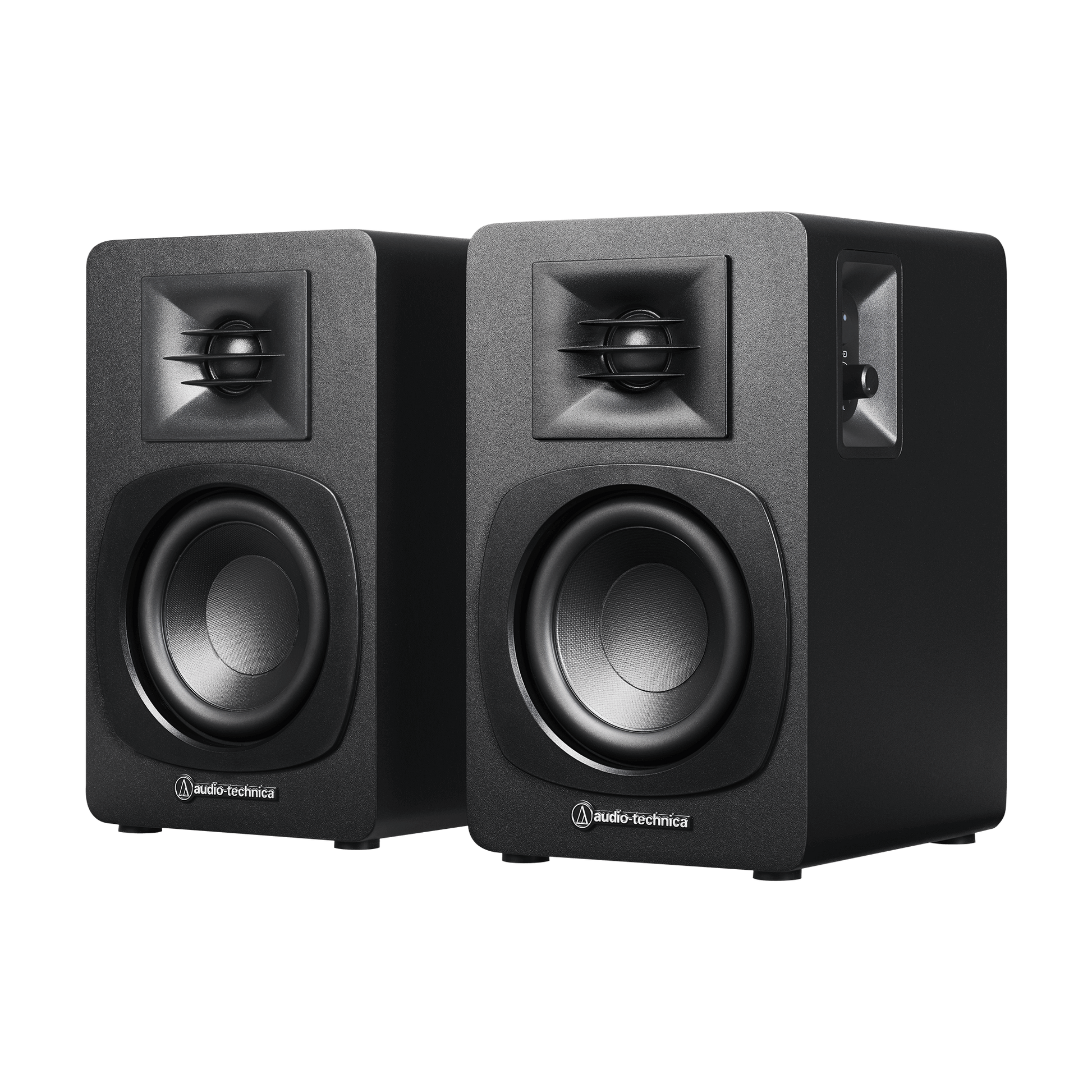 Perfect for use with turntables, computers, smartphones or other devices, the AT-SP3X powered bookshelf speakers deliver rich, full-range audio via a wired or wireless connection. These compact, unobtrusive speakers elevate the listening experience in any room. They feature 3" woofers and 1.1" tweeters specially tuned by a built-in DSP to produce powerful, well-balanced sound for music, movies, and more.