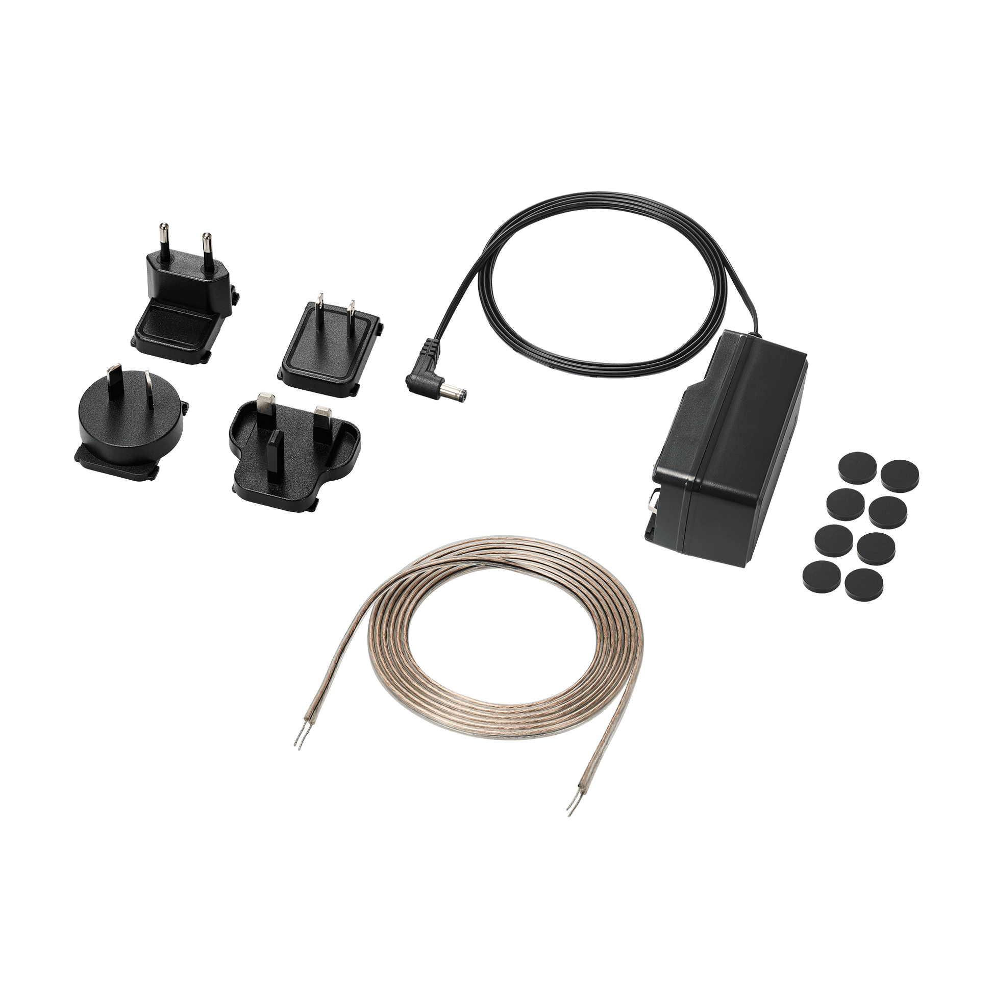 - Includes an AC adapter with three international plug adapters and a 6.6' (2.0 m) speaker cable