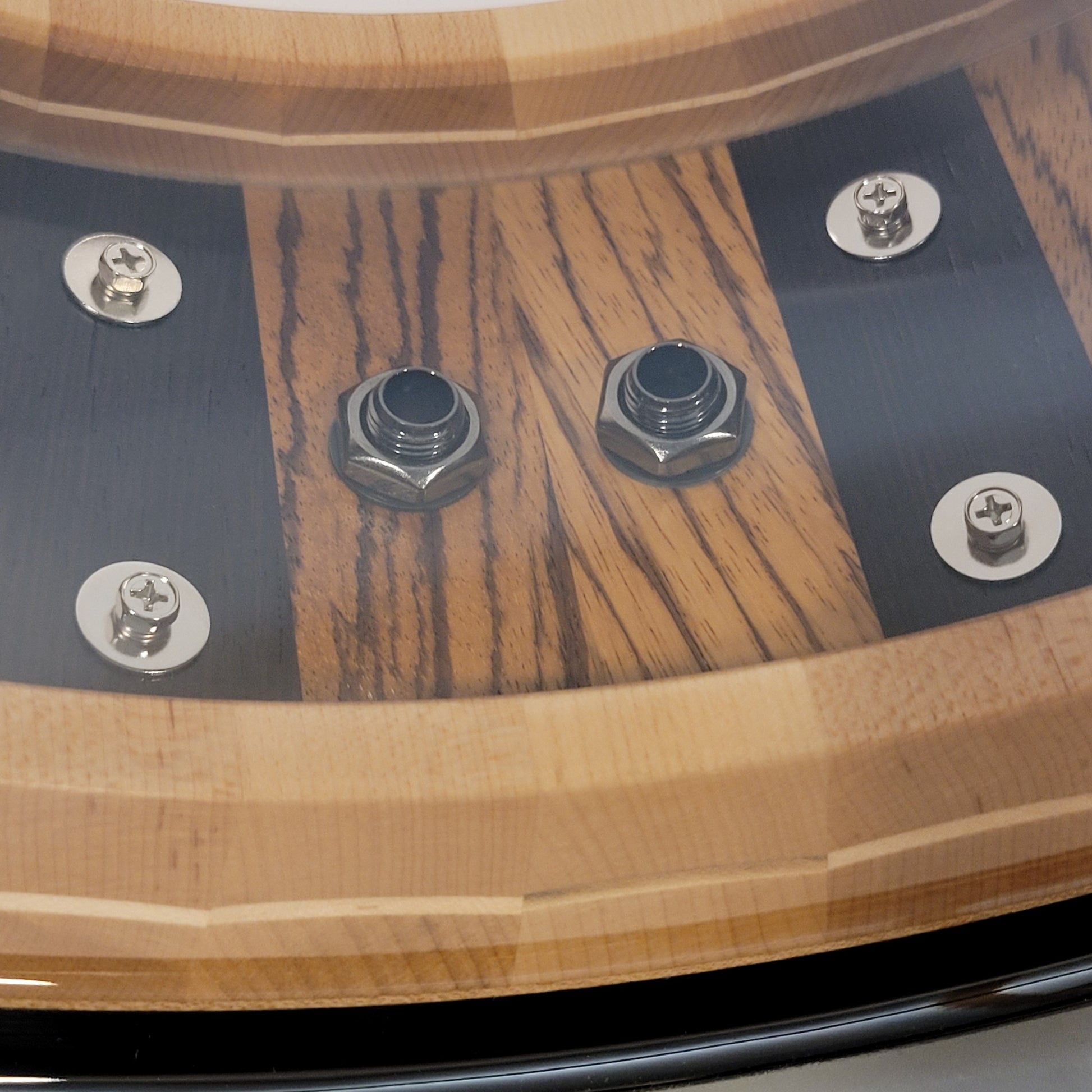 Housed between the shell and reinforcement ring is a thin piece of horizontal maple running the circumference of the shell.